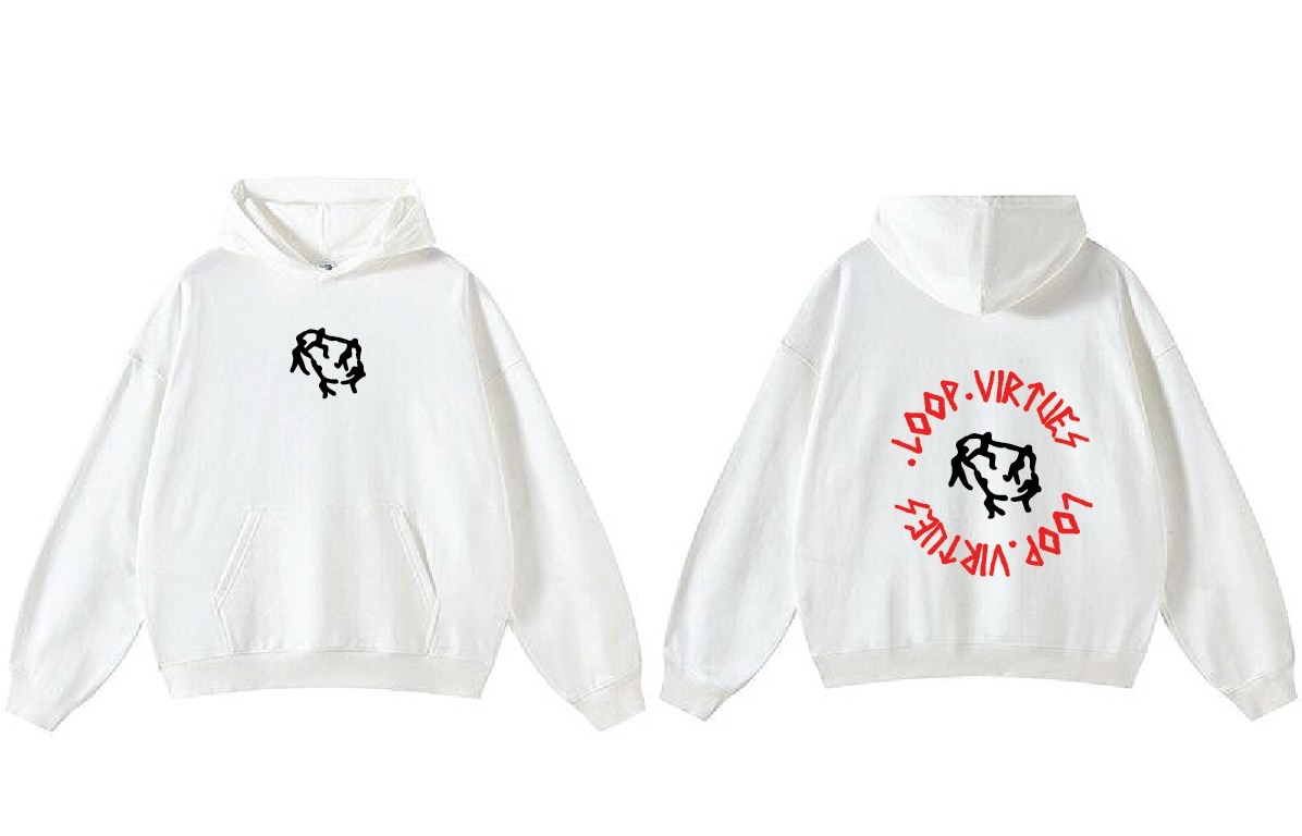 The LoopVirtues Ivory Legacy Hoodie represents purity, bold identity, and timeless expression. Designed in a clean ivory-white tone, this piece captures the essence of elevated simplicity while highlighting the powerful LoopVirtues message of unity and positivity. The minimalist front emblem delivers a refined and modern aesthetic, while the striking red circular back graphic creates a bold contrast that reinforces the philosophy of staying connected and moving with purpose.